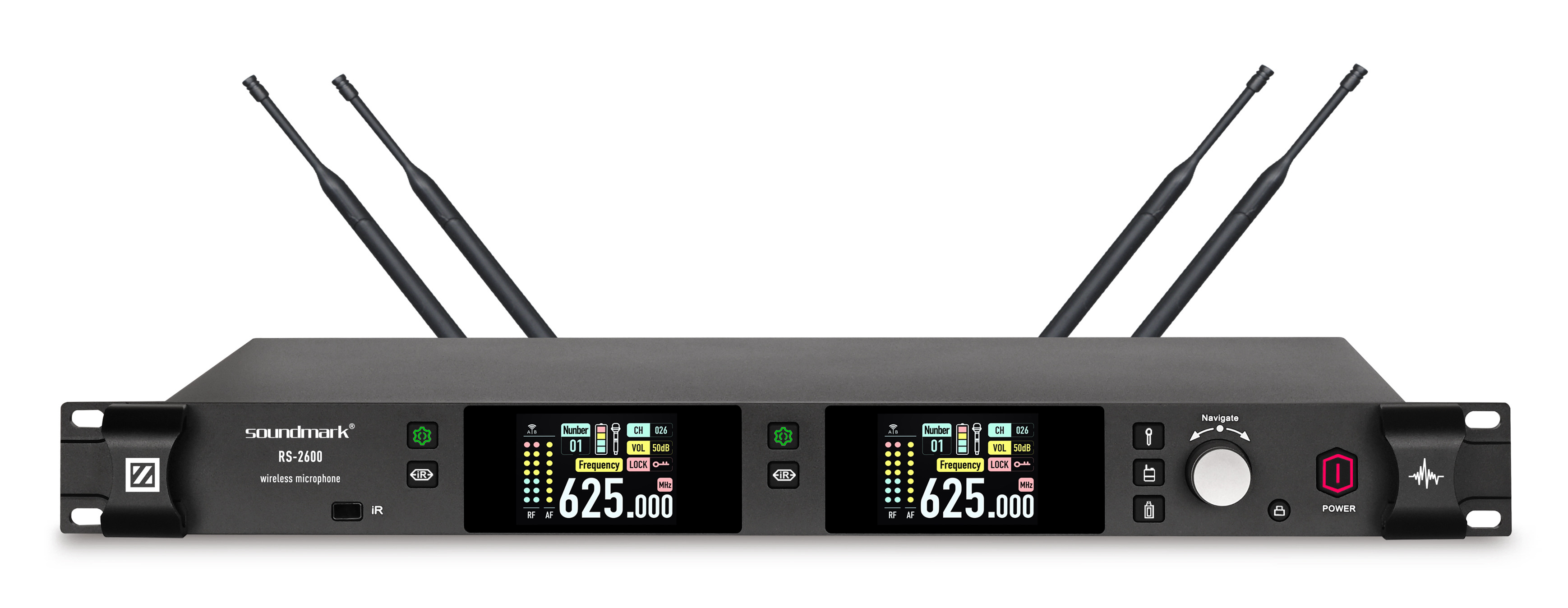• 接收机具备高清TFT显示屏、环境干扰检测、中英文功能、自动搜频功能、带64色LED色彩显示和一键锁功能的先进技术.